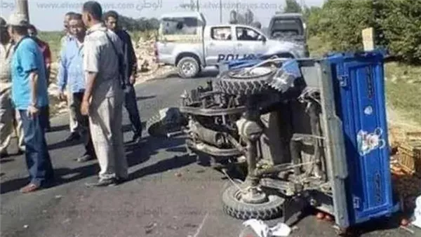 أعلى طريق أسيوط الزراعي.. إصابة شخصين في حادث تصادم ملاكي وتروسيكل