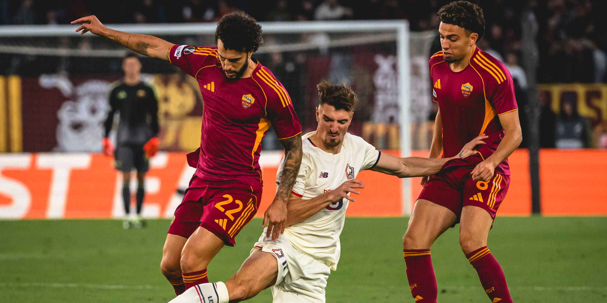 هاي كورة- انتهت احداث الشوط الاول بتقدم فريق روما الايطالي امام نظيره ليل الفرنسي، بهدف دون رد، على ملعب الأولمبيكو، ضمن منافسات الجولة الثانية من مسابقة الدوري الاوروبي.