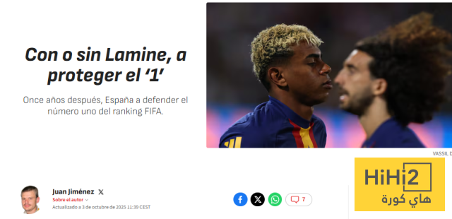 “تعود اسبانيا للدفاع عن مركزها الاول في تصنيفات الاتحاد الدولي لكرة القدم (الفيفا) مع لامين او بدونه “.