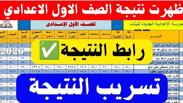 الأن نتيجة الصف الأول الاعدادي 2026 الترم الأول بالاسم ورقم الجلوس ظهرت فورا