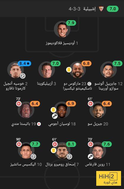 تقييم لاعبو إشبيلية أمام برشلونة بقلمAhmed Dfvvc Posted on أكتوبر 5, 2025 شارك هذه المقالة مع أصدقائك!فايس بوك تويترWhatsapp هاي كورة – انتهت مباراة نادي إشبيلية و ضيفه برشلونة في الدوري الاسباني ضمن منافسات الجولة الثامنة من المسابقة المحلية وذلك على ملعب رامون سانشيز بفوز إشبيلية 4-1. تقييم فريق إشبيلية في مباراة برشلونة: