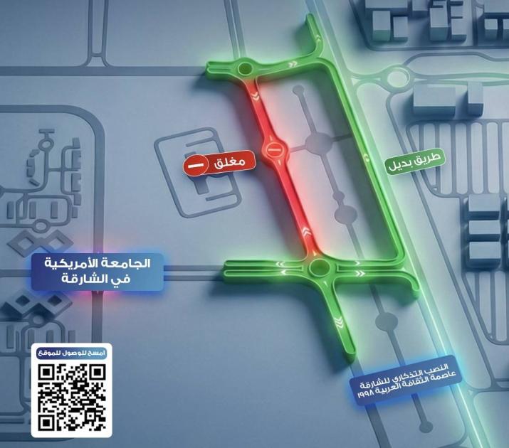 وأوضحت أن الإغلاق سيبدأ اعتباراً من اليوم الجمعة، ويستمر حتى بعد غد الأحد، مبينةً أن أعمال التحسين تشمل رفع كفاءة عناصر السلامة على الطريق، بما يسهم في تقليل الازدحام المروري وتحسين تجربة التنقل في المناطق الحيوية المحيطة، وفي مقدمتها محيط الجامعة الأمريكية في الشارقة والمناطق السكنية المجاورة.