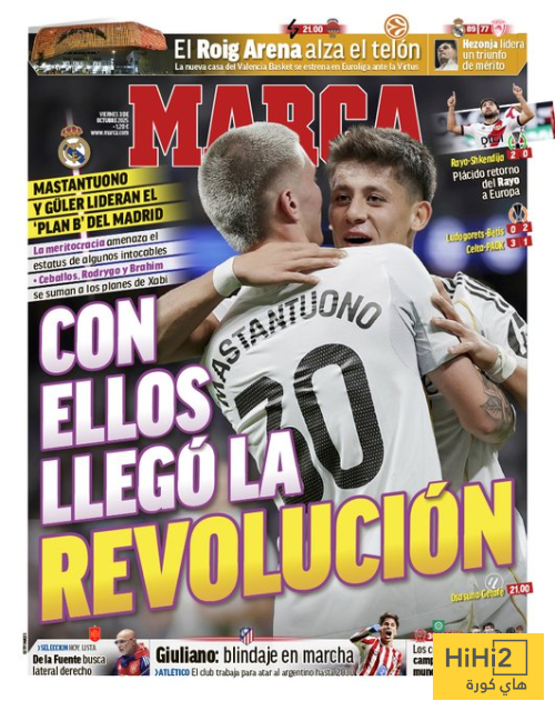 هاي كورة- تصدر اردا غولر وفرانكو ماستانتونو غلاف صحيفة ماركا الاسبانية اليوم الجمعة 3 اكتوبر 2025.