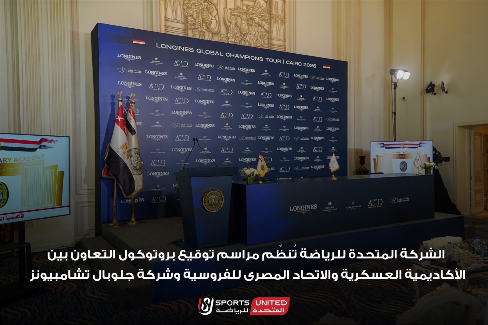 تم تنظيم مراسم توقيع بروتوكول التعاون بين الأكاديمية العسكرية المصرية والاتحاد المصري للفروسية وشركة «جلوبال شامبيونز تور» من خلال الشركة المتحدة للرياضة، في العاصمة الجديدة، وذلك بهدف إقامة بطولة الفروسية تحت سفح أهرامات الجيزة لمدة خمس سنوات.