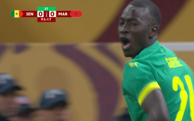 وفي الدقيقة 94 سجل باب جاي الهدف الأول لمنتخب السنغال في مرمى المغرب بطريقة رائعة وبعد تسديدة من خارج منطقة الجزاء.